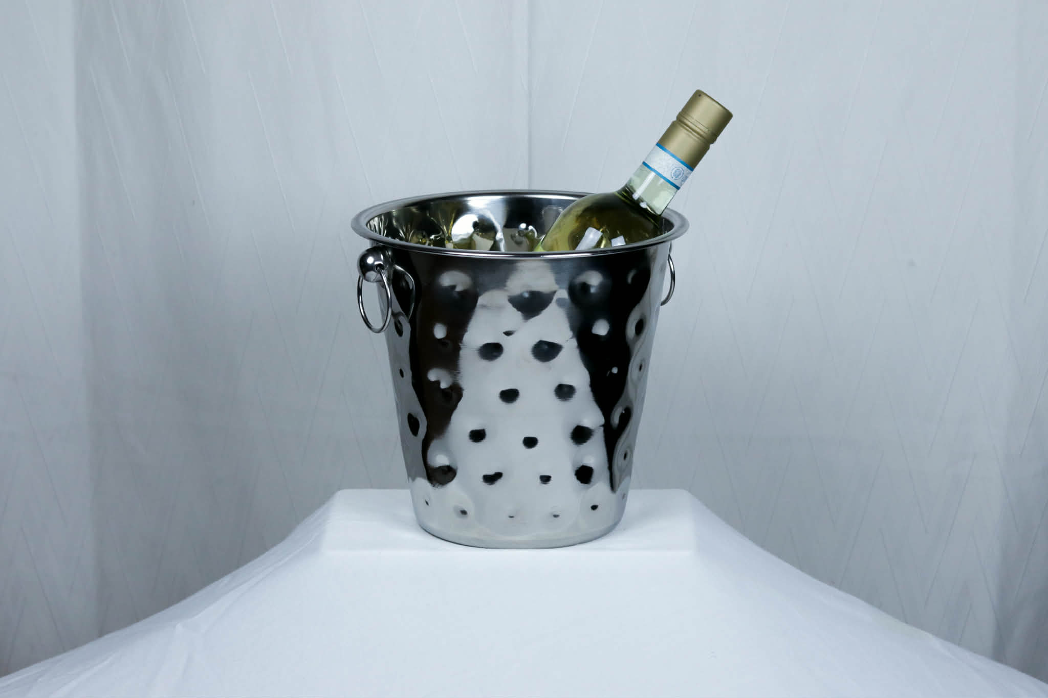 Hink i silver för att kyla en flaska.